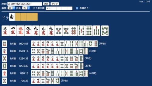 麻雀 定石「何切る」301選 の Q022。[ 東場 東家 ] は確定メンツなので、亜リャンメン 、リャンメントイツ 、4連形 のどれを切るかの問題。電脳麻将: 何切る解答機 の選択はリャンメントイツから打 、ウザク本の回答は亜リャンメンから打 。